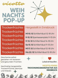 VICOTTO Weihnachts-Pop-Up im Schillerhäusl: noch am Freitag – Samstag – Mittwoch – Montag im Dezember: